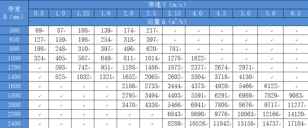 表1.1 固定帶式輸送機(jī)選型表